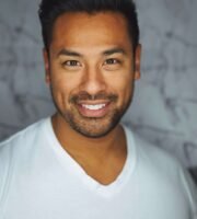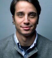 A rural landscape featuring a field of ripe crops with a large tree in the foreground. In the middle ground, workers operate a red tractor near a haystack, while mountains rise in the background under a partly cloudy sky.